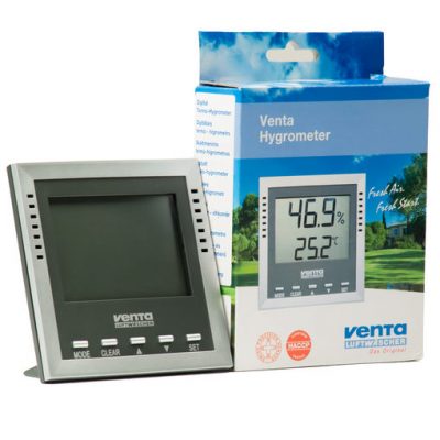 The Venta Hygrometer uses high precision technology to provide you accurate temperature and relative humidity readings. This digital hygrometer helps ensure the recommended humidity level is between 35 – 50% to maintain optimum health. The easy to read LED digital display shows maximum and minimum values, dew point and wet bulb temperature. The Venta Hygrometer features an alarm function for all parameters, offering you peace of mind alerts so you can be aware of changes in your home environment.